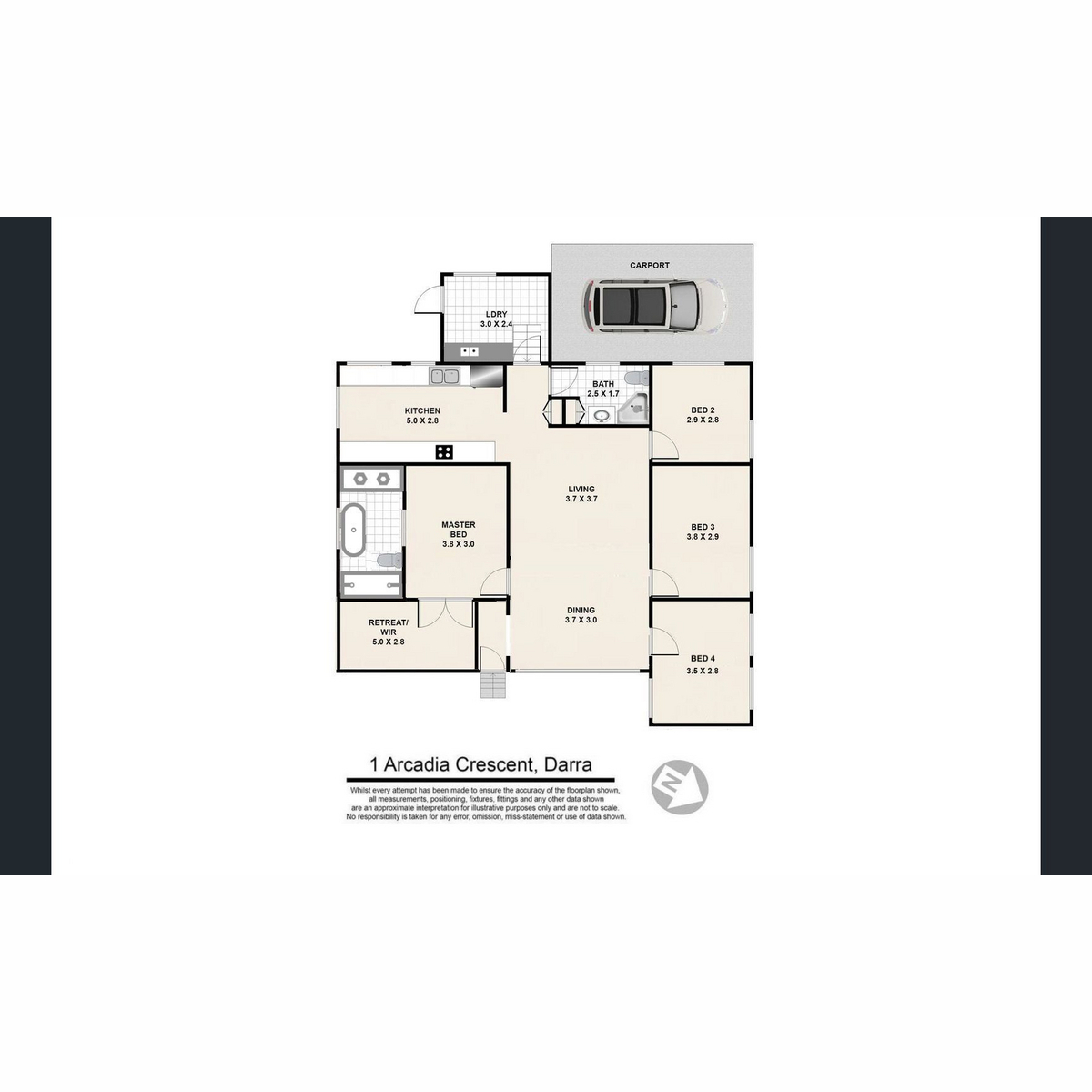 Being a corner block, you have the luxury of two separate car entrances from either side of the road, and with a new concrete driveway offering 3 spaces, as well as a carport around the side of the property, this home comfortably can fit 4 cars. The home has been brought to life with a fresh coat of paint, and new black windows. Icing on the cake is the new classic white picket fence to turn heads. A large arbour will invite your guests straight through from the front, leading you to the gorgeous and new façade of ‘Arcadia House’.