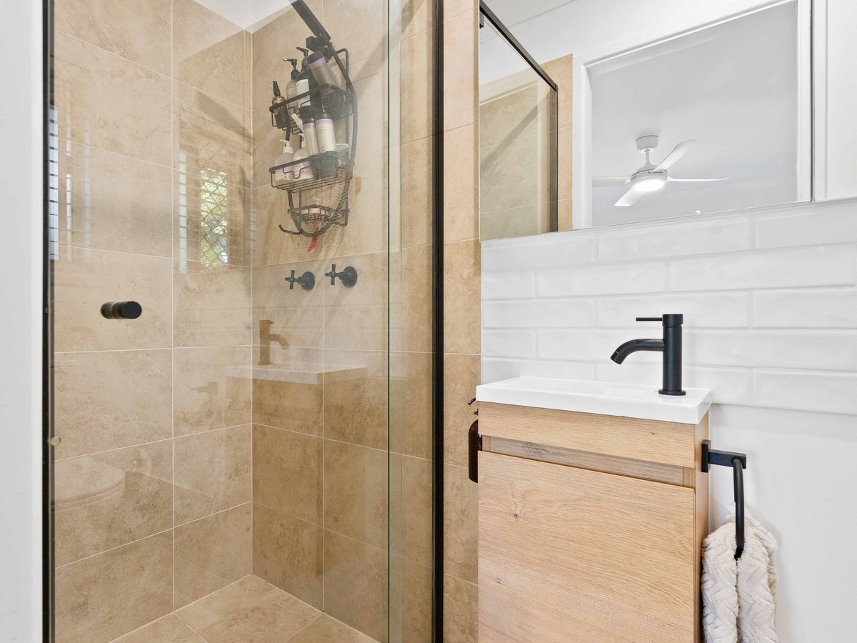The master suite is a true retreat, featuring built-in robes, a renovated ensuite, and air conditioning for those warm summer nights. The main living area is also air-conditioned, offering a cool and inviting space to relax and unwind. The renovated bathroom is modern and stylish, completing the home’s interior with contemporary fixtures and finishes.