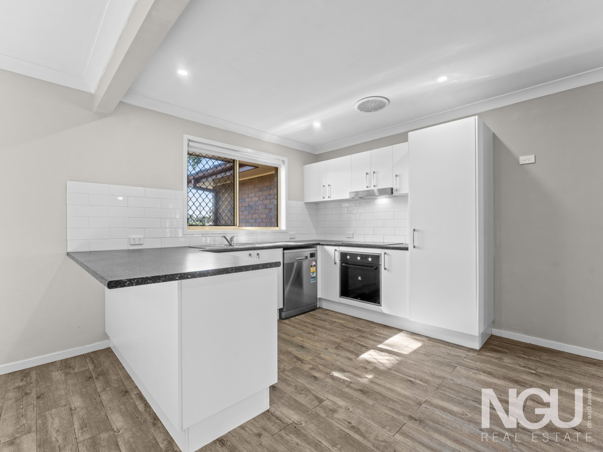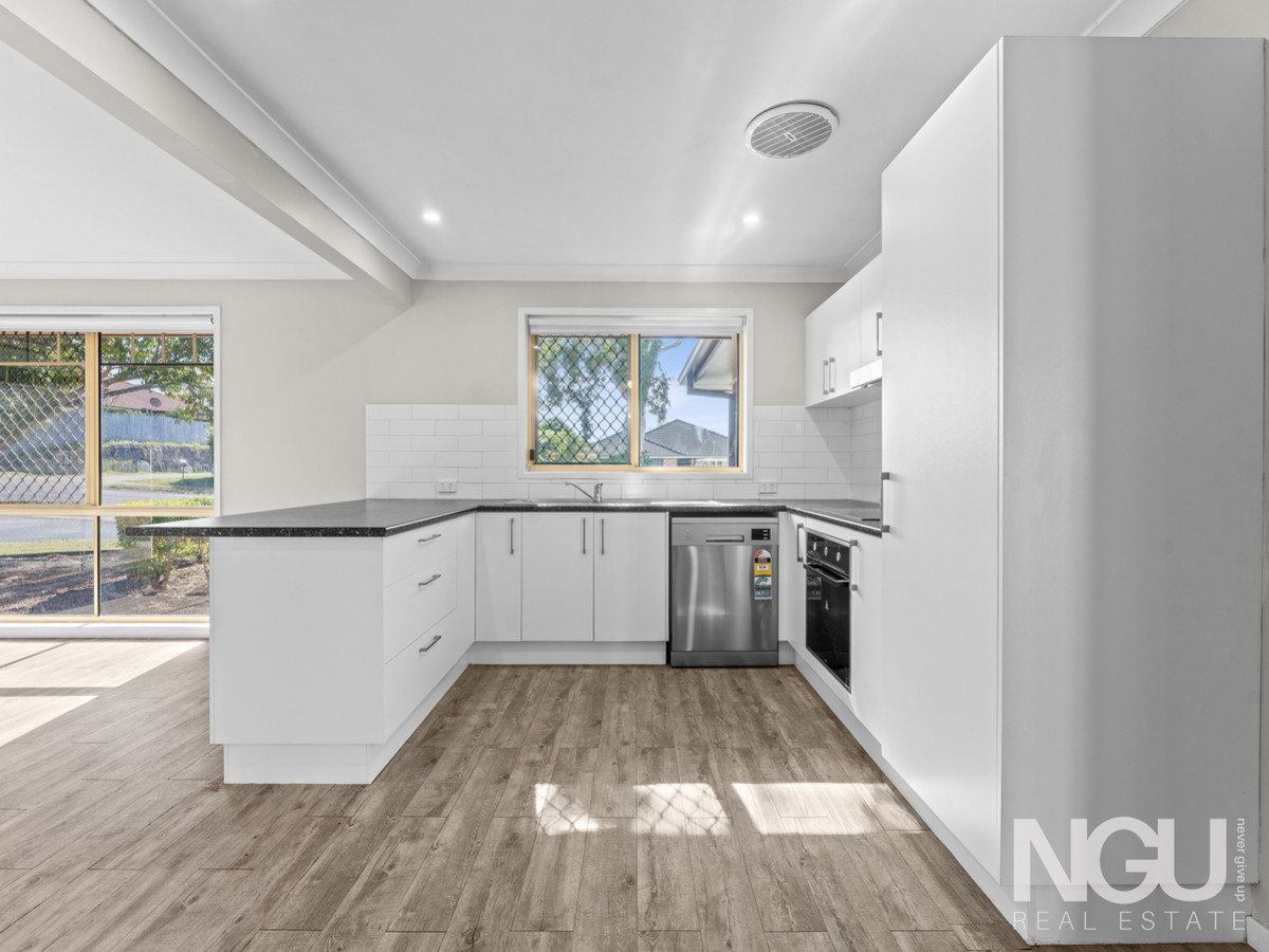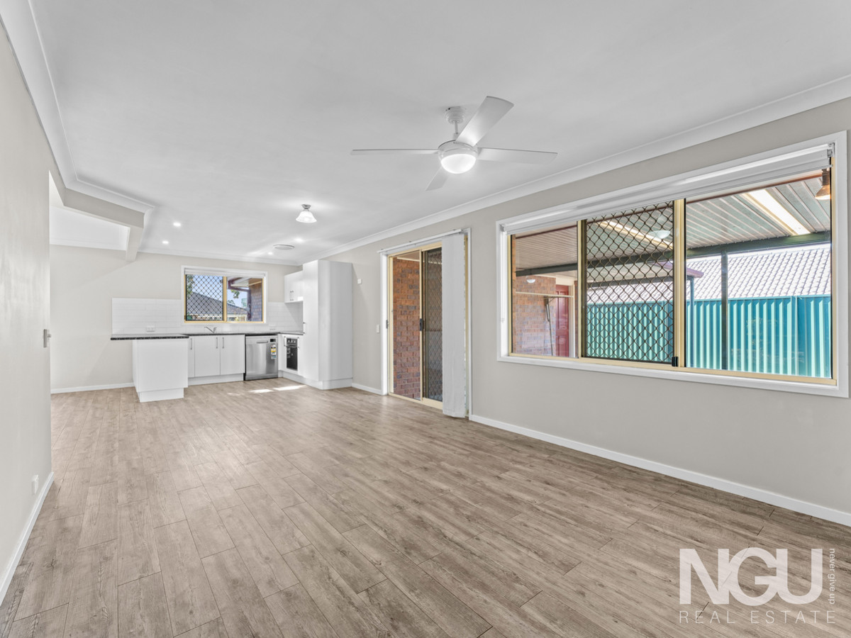 The heart of the home is a beautifully renovated kitchen, complete with modern appliances, a dishwasher, a breakfast bar, and plenty of storage — ideal for everyday living and entertaining. The open-plan living areas feature near new flooring and have been freshly painted, creating a bright and welcoming atmosphere throughout.