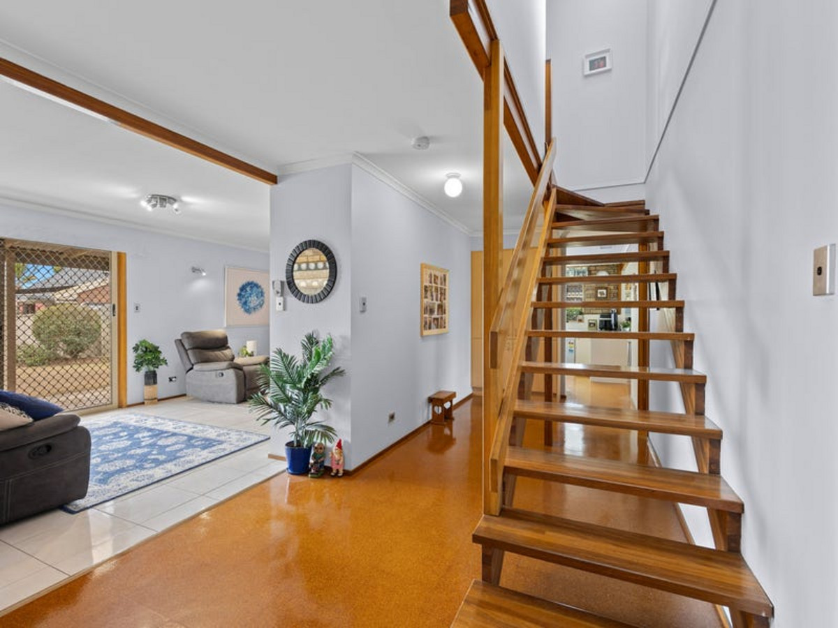 The property’s aesthetics are further enhanced with a charming hardwood staircase and manicured gardens. Security screens throughout provide peace of mind, ensuring the safety of your loved ones and belongings. Ample storage space is readily available, so your belongings are always neatly organized.