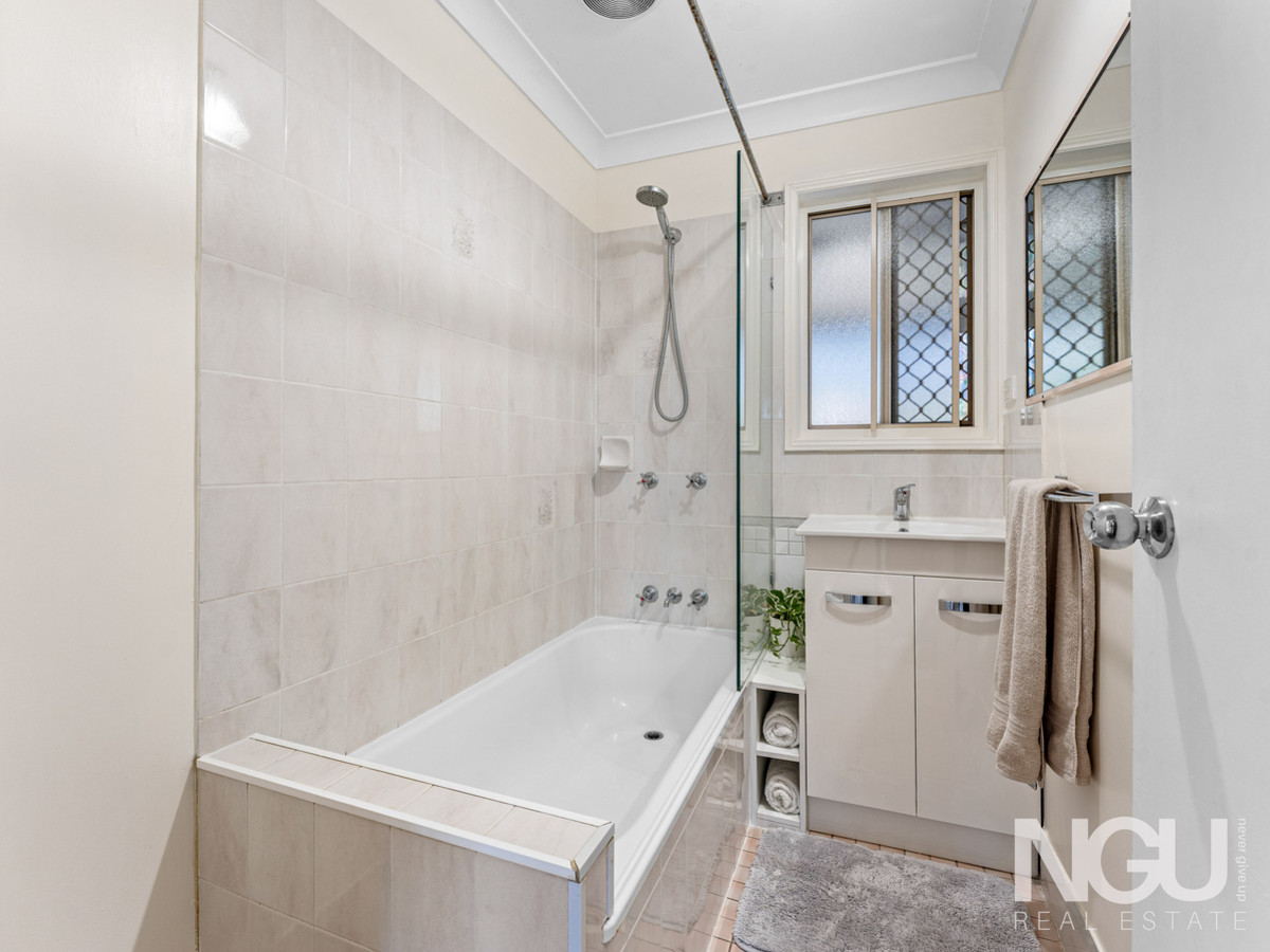 The well-maintained bathroom includes a bathtub, ideal for families, complemented by an internal laundry for everyday convenience.