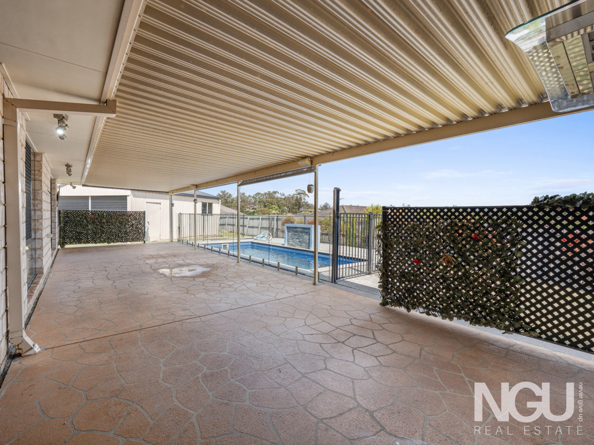 Practicality meets convenience with a generous laundry, accommodation for four vehicles, and excellent side access to a massive shed with two roller doors perfect for storing boats, caravans, or additional vehicles. Outdoor living shines here, with an expansive patio overlooking the pool and backyard, creating the ultimate setting for entertaining. Air conditioning in every room ensures year-round comfort.